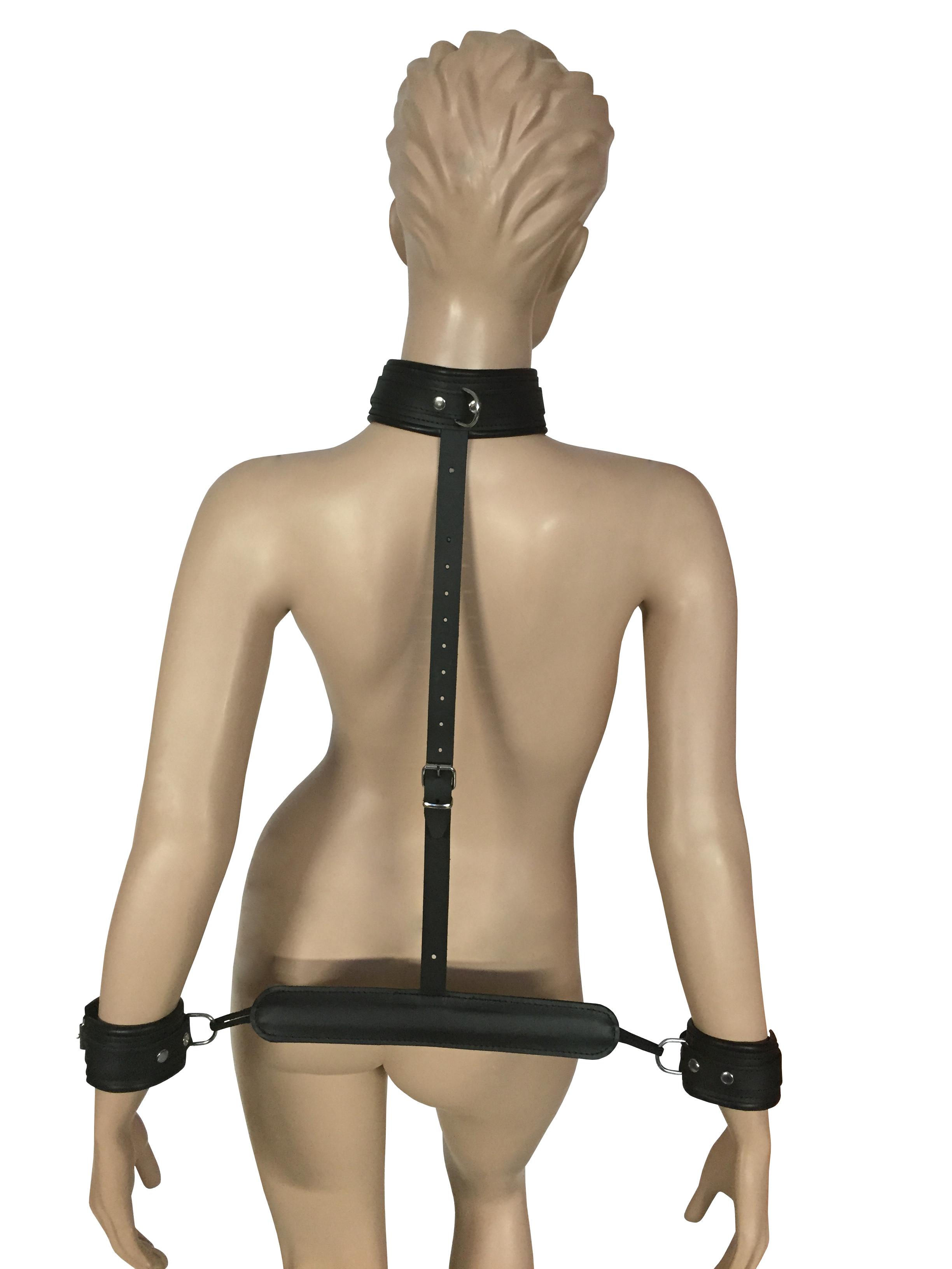 Lederverbindung von der Halsfessel bis zur Handfessel verstellbar.
