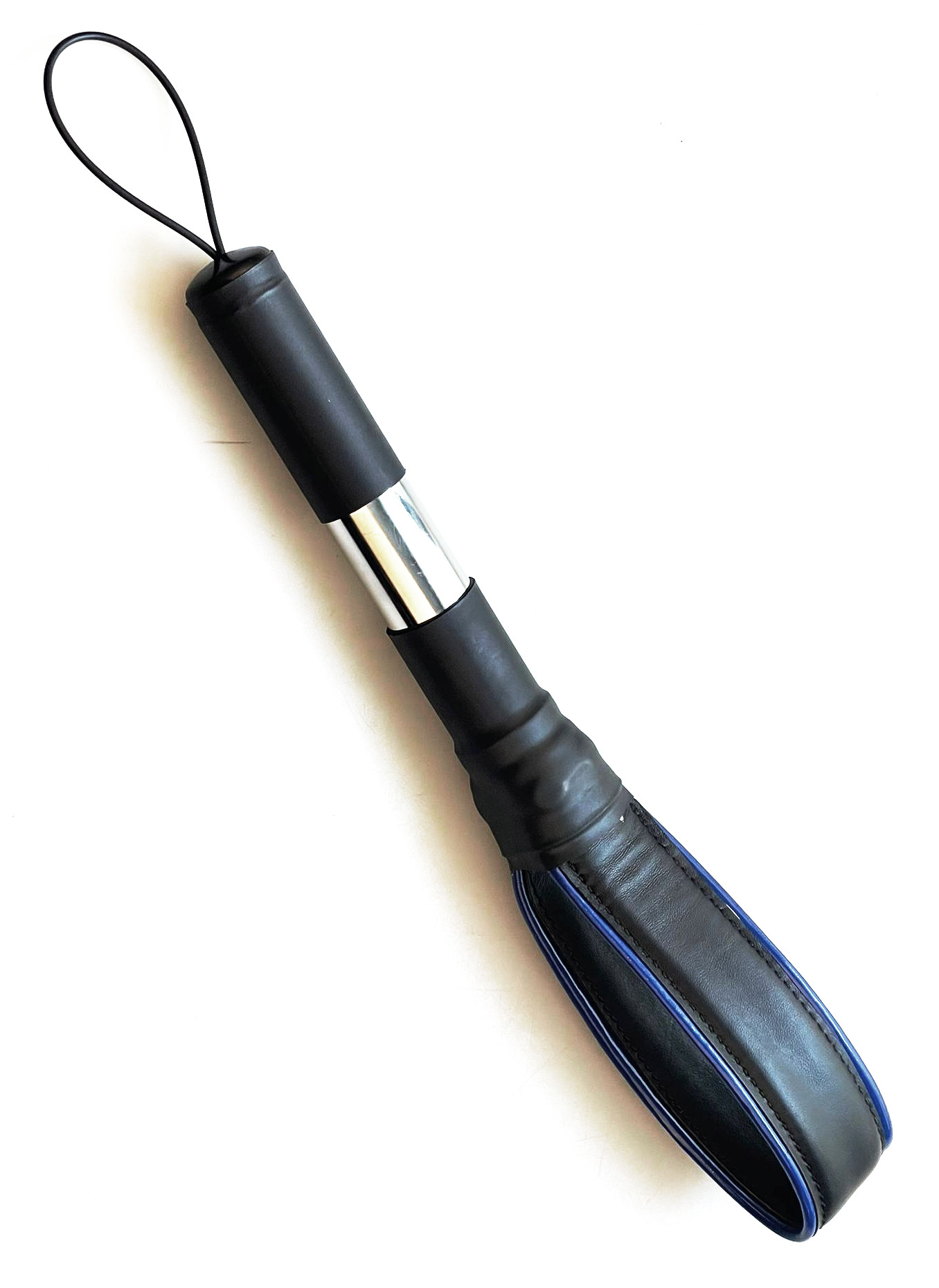 Produktinformationen "Leder-Paddle mit Metallgriff blauer Streifen"