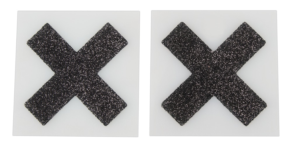 Glitzernde schwarze Nippel-Kreuze zum Aufkleben. Auf der Rückseite mit Haftstreifen.