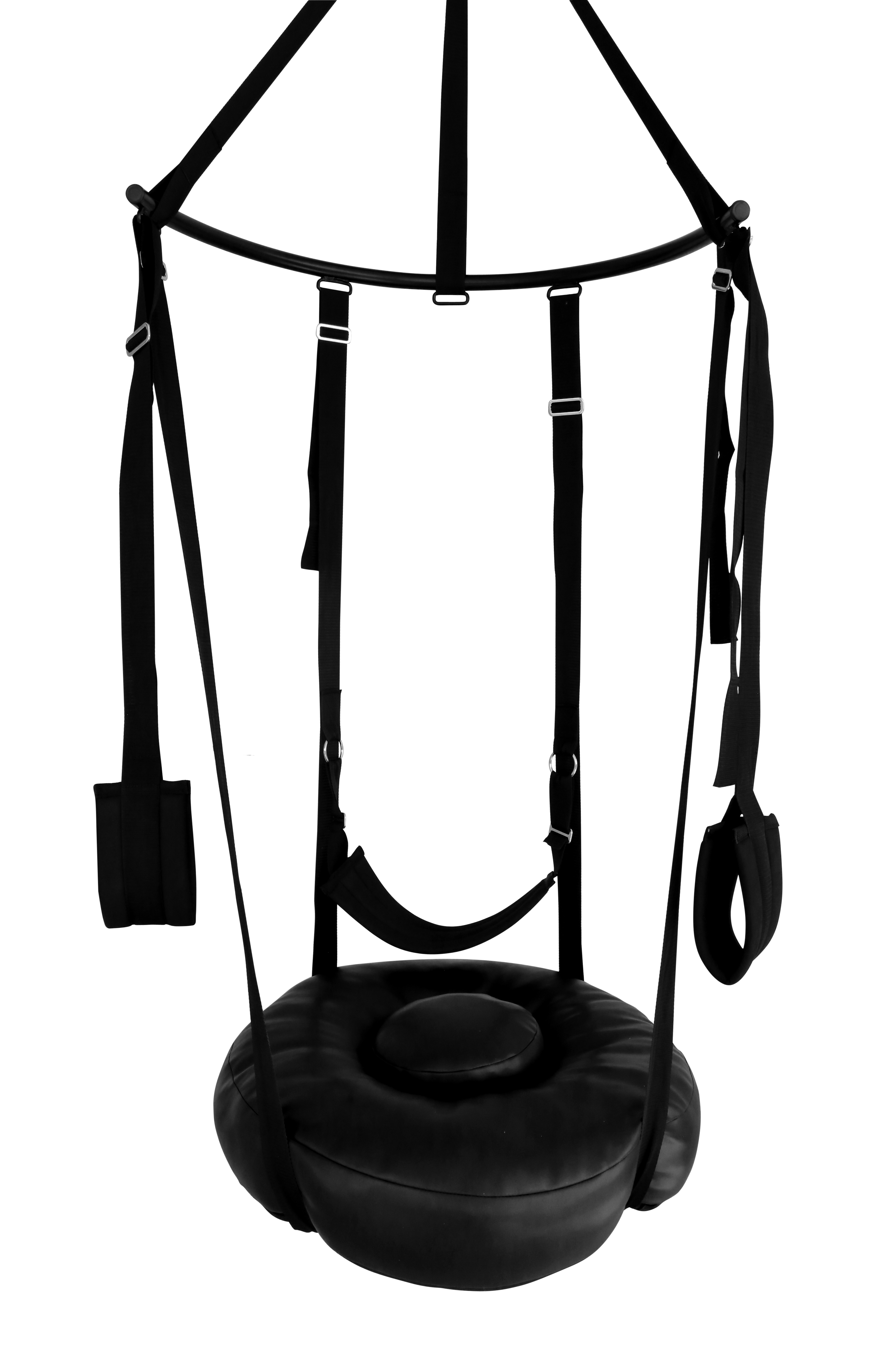 The 4 adjustable belts which hold the Sex DONUT are safely attached to the semi-circular metal bar,
