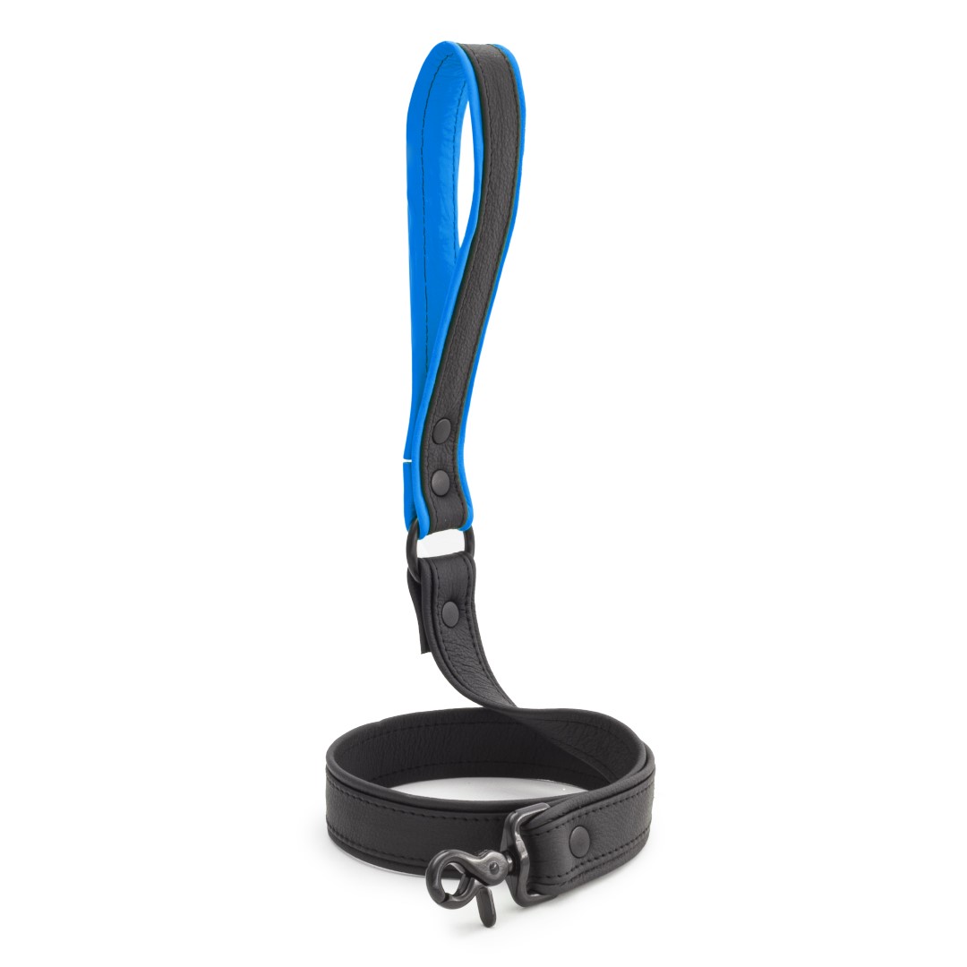 Soft Leder Leine Kurz Schwarz/Blau